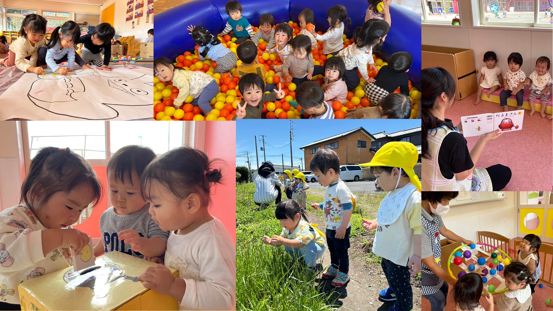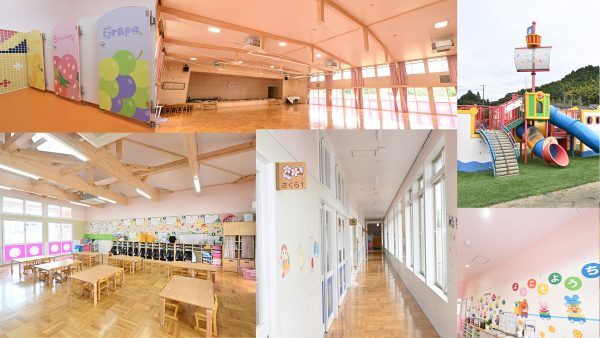 | 施設 | 保育室9、ゆうぎ室1、カルチャー室1、職員室1、給食室1、園庭、駐車場、プール |
